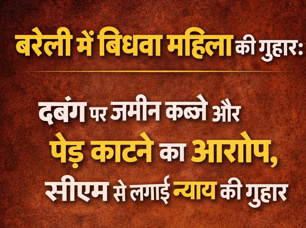 बरेली (मीरगंज):जिला बरेली की तहसील मीरगंज के ग्राम फिरोजपुर की निवासी फिरोजी बेगम ने गांव के ही एक व्यक्ति पर उनकी कृषि भूमि पर अवैध कब्जा करने की कोशिश, पॉपलर के पेड़ काटने का प्रयास तथा जान से मारने की धमकी देने का गंभीर आरोप लगाया है। पीड़िता ने इस संबंध में मुख्यमंत्री उत्तर प्रदेश को प्रार्थना पत्र भेजकर कार्रवाई की मांग की है।प्रार्थना पत्र के अनुसार, फिरोजी बेगम पत्नी स्वर्गीय मुज्जमिल हुसैन की कृषि भूमि गाटा संख्या 672, रकबा 0.1520 हेक्टेयर, ग्राम फिरोजपुर में स्थित है। भूमि में उनका 1/4 हिस्सा दर्ज है, जबकि अन्य हिस्सेदारों में रसूल जान व रजिया सुल्ताना का नाम बताया गया है। पीड़िता का कहना है कि उनके पति ने अपने जीवनकाल में उक्त भूमि पर लगभग 70 पॉपलर के पेड़ लगाए थे, जो वर्तमान में 7-8 वर्ष पुराने हैं। वर्ष 2022 में पति के निधन के बाद से वह स्वयं भूमि की देखभाल कर रही हैं।फिरोजी बेगम का आरोप है कि गांव के नाजिम खां पुत्र हामिद रजा खां, जो कथित रूप से अपराधिक प्रवृत्ति का व्यक्ति है, उनके खेत में लगे पॉपलर के पेड़ों को जबरन काटने का प्रयास कर रहा है। उन्होंने आरोप लगाया कि नाजिम खां स्वयं को भूमि का खरीदार बताता है, लेकिन कथित बैनामा या दाखिल-खारिज का कोई दस्तावेज प्रस्तुत नहीं करता। पीड़िता का कहना है कि खतौनी में भी उसका नाम दर्ज नहीं है।पीड़िता ने यह भी आरोप लगाया है कि विरोध करने पर उन्हें और उनके बेटे को जान से मारने की धमकी दी जा रही है। उनका कहना है कि वह विधवा हैं और उनका बेटा बाहर रहकर काम करता है, जिसका फायदा उठाकर उन्हें डराया-धमकाया जा रहा है।प्रार्थना पत्र में नाजिम खां के विरुद्ध पूर्व में दर्ज विभिन्न आपराधिक मुकदमों का भी उल्लेख किया गया है, जिनमें मारपीट, धमकी, लूट, हत्या के प्रयास, एससी/एसटी एक्ट तथा यूपी गुंडा एक्ट के मामले शामिल बताए गए हैं। हालांकि इन मामलों की स्वतंत्र पुष्टि नहीं हो सकी है।फिरोजी बेगम ने मुख्यमंत्री से मांग की है कि मामले की निष्पक्ष जांच कराकर उन्हें व उनके परिवार को सुरक्षा प्रदान की जाए, उनकी भूमि पर अवैध कब्जा व पेड़ों की कटाई रोकी जाए तथा दोषी पाए जाने पर संबंधित व्यक्ति के विरुद्ध कठोर कार्रवाई की जाए।