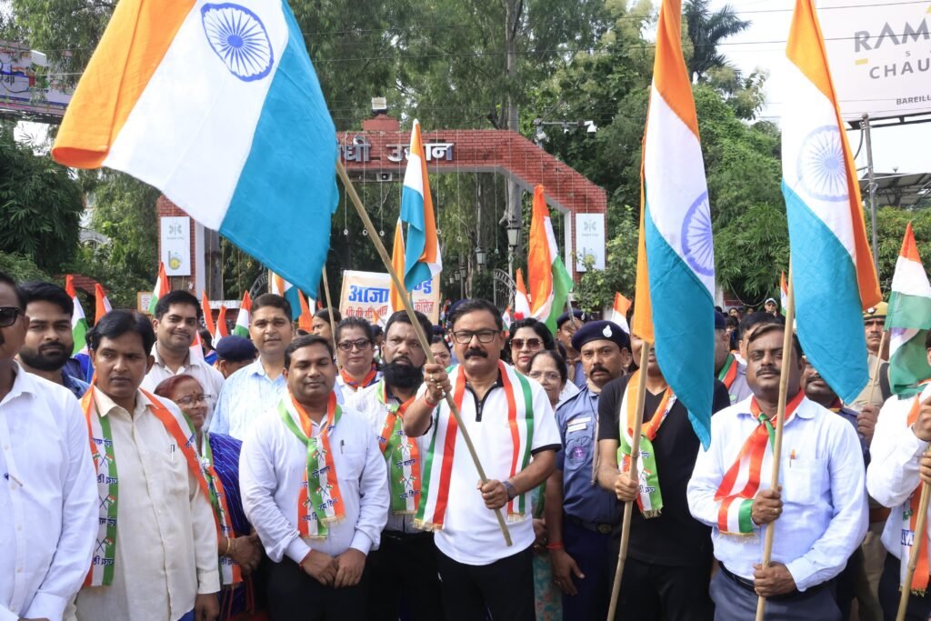 बरेली। आजादी का अमृत महोत्सव के अंतर्गत हर घर तिरंगा अभियान 2025 के क्रम में बेसिक व माध्यमिक शिक्षा विभाग द्वारा आयोजित वृहद तिरंगा रैली का जिलाधिकारी अविनाश सिंह ने आज गांधी उद्यान से शुभारम्भ किया। यह रैली गाँधी उद्यान से प्रारम्भ होकर, जिला जज आवास से सर्किट हाउस रोड से सर्किट हाउस चौराहा होते हुए आयुक्त कार्यालय में स्थित शहीद स्तम्भ पर समाप्त हुई। इस अवसर पर जिलाधिकारी द्वारा प्रतिभागियों को राष्ट्रीय एकता, अखण्डता एवं देशभक्ति की भावना को सुदृढ़ करने का संदेश दिया गया। तिरंगा रैली के माध्यम से नागरिकों में स्वतंत्रता संग्राम के महत्त्व, राष्ट्रीय ध्वज के सम्मान एवं राष्ट्रप्रेम के प्रति जागरूकता बढ़ाने का आह्वान किया गया। कार्यक्रम में विभिन्न शिक्षण संस्थानों, स्वयंसेवी संस्थाओं सामाजिक संगठनों, तथा आम नागरिकों ने उत्साहपूर्वक भाग लिया और देशभक्ति से ओत-प्रोत नारों के साथ रैली को सफल एवं ऐतिहासिक बनाया।जिलाधिकारी ने कहा कि हर घर तिरंगा केवल एक अभियान नहीं, बल्कि यह देश की एकता, अखंडता और गौरव का प्रतीक है। उन्होंने जनसामान्य से अपील की कि वे 15 अगस्त को अपने घरों पर राष्ट्रीय ध्वज फहराकर देशप्रेम की भावना को और सशक्त करें। तिरंगा सेल्फी प्वाइंट पर खड़े होकर जिलाधिकारी ने खिचवाई फोटो, साथ ही स्वयं तिरंगा के साथ सेल्फी लेकर जनमानस को सेल्फी अपलोड करने हेतु प्रेरित किया।इस विशेष आयोजन का उद्देश्य नागरिकों में राष्ट्रीय ध्वज के प्रति सम्मान, देशभक्ति की भावना का संचार तथा तिरंगे के ऐतिहासिक महत्व को जन-जन तक पहुँचाना रहा। रैली में मनोहर भूषण इण्टर कालेज, श्री गुलाब राय इण्टर कालेज, श्री सूरजभान इण्टर कालेज, केडीईएम इण्टर कालेज, कांति कपुर गर्ल्स इण्टर कालेज, सूरजमुखी इण्टर कालेज, श्री गुरु गोविन्द सिंह इण्टर कालेज, लायन्स रोहिला इण्टर कालेज, राजकीय इण्टर कालेज, राजकीय बालिका इण्टर कालेज, मैथोडिस्ट गर्ल्स इण्टर कालेज, रामभरोसे लाल इण्टर कालेज, बिशप मण्डल इण्टर कालेज, स्त्री सुधार इण्टर कालेज, द्रोपद्री कन्या इण्टर कालेज, कस्तूरबा नगर निगम बालिका इण्टर कालेज, डीएवी कालीचरण उ0मा0वि0, गांधी उ0मा0वि0, कुसूम कुमारी कन्या उ0मा0वि0, शांति अग्रवाल सरस्वती विद्या मंदिर इण्टर कालेज, मौलाना आजाद इण्टर कालेज, हाफिज सिद्दीकी पंजाबी हायर सेकेंडरी स्कूल, आरएन टैगोर इण्टर कालेज, महावीर प्रसाद कन्या इण्टर कालेज, श्री गुरू नानक खालसा इण्टर कालेज के छात्र/छात्राओं सहित विद्यालयों के स्काउट गाइड/एनसीसी एवं एनएसएस के छात्र-छात्राएं उपस्थित रहे। उक्त आयोजन में अपर जिलाधिकारी नगर सौरभ दुबे, अपर नगर मजिस्ट्रेट प्रथम आलोक कुमार, अपर नगर मजिस्ट्रेट द्वितीय, जिला विद्यालय न